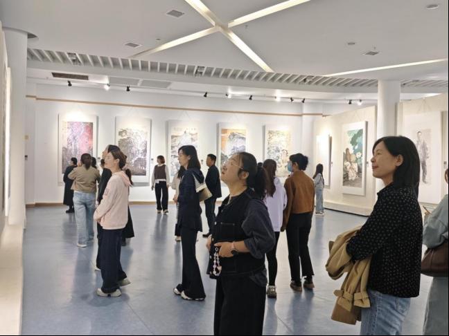 參觀過程中,教師們不時輕聲交流,現(xiàn)場氣氛熱烈而濃厚。有的教師結合教育工作實際,分享在教學與管理中堅守廉潔底線的經(jīng)驗與思考;有的教師圍繞作品藝術特色,探討廉政文化與藝術創(chuàng)作的融合之道。大家在交流中相互啟發(fā),進一步加深了對廉政文化的理解和認識。