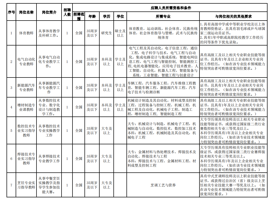 按照《石嘴山工貿(mào)職業(yè)技術(shù)學(xué)院2024年編制外自主招聘教師公告》要求,根據(jù)實(shí)際資格審查合格人數(shù)情況,經(jīng)石嘴山工貿(mào)職業(yè)技術(shù)學(xué)院自主招聘工作領(lǐng)導(dǎo)小組會(huì)議研究,現(xiàn)將變更崗位資格條件及延長(zhǎng)報(bào)名時(shí)間公告如下:
