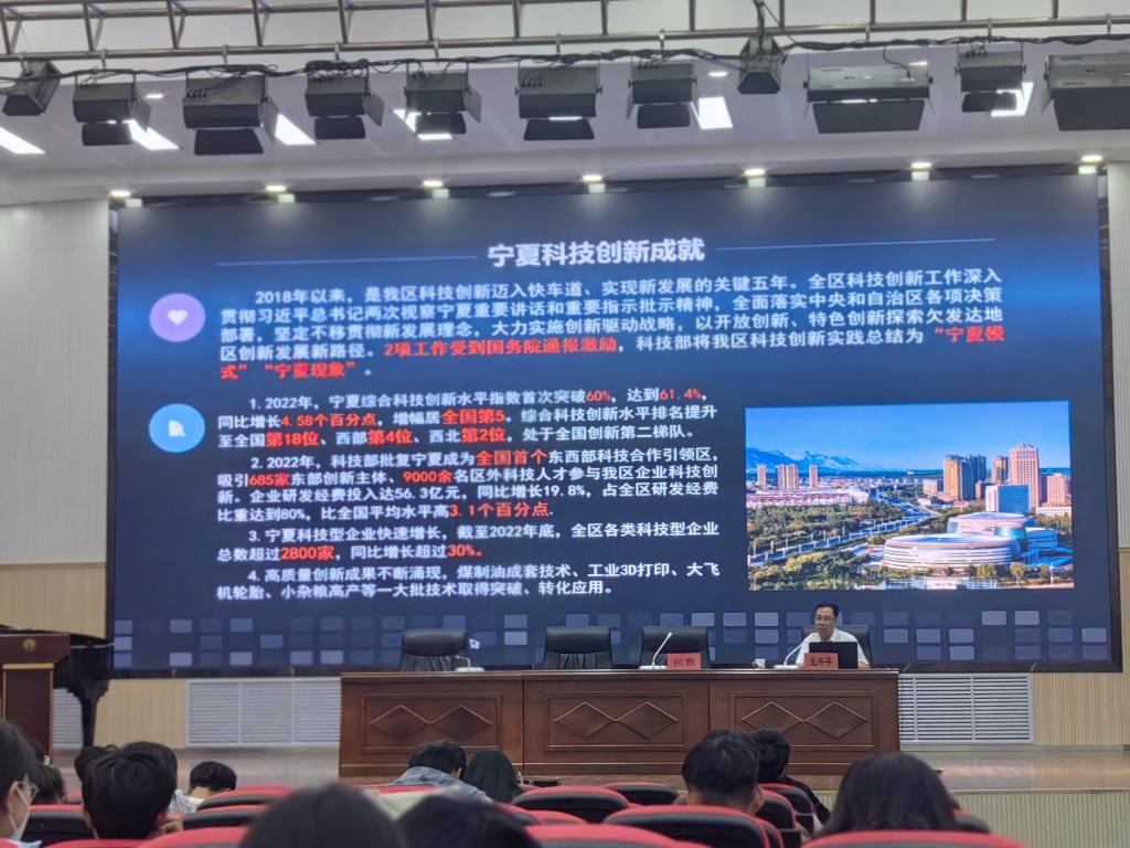 王興平同志圍繞科技創(chuàng)新能力建設(shè)、當(dāng)前科技創(chuàng)新存在的問題和不足、創(chuàng)新實踐與政策支持以及下一步的目標(biāo)四個方面展開了精彩的闡述,帶領(lǐng)師生充分的認(rèn)識了自治區(qū)、石嘴山市的科研現(xiàn)狀以及存在的問題,通過對當(dāng)前科研政策的詳細(xì)解讀,為我院師生指出了今后科技創(chuàng)新的新方向。