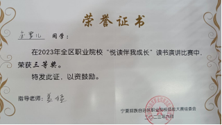 喜報!石嘴山工貿(mào)職業(yè)技術(shù)學(xué)院兩名學(xué)生在全區(qū)職業(yè)院校讀書演講比賽中雙雙獲獎