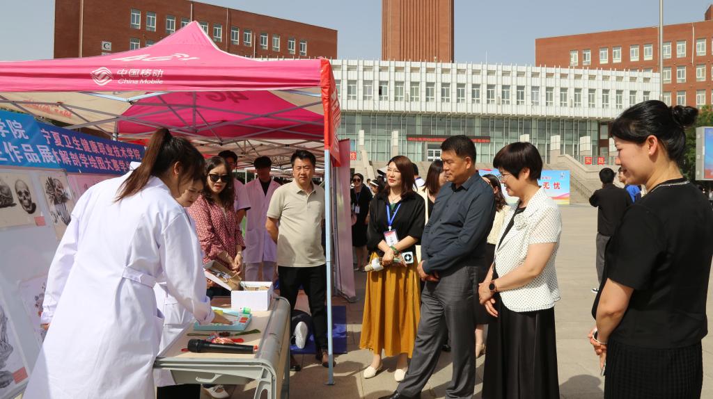 石嘴山市人大常委會、市教育局、市人力資源和社會保障局、市工業(yè)和信息化局、寧夏衛(wèi)生健康職業(yè)技術(shù)學(xué)院相關(guān)領(lǐng)導(dǎo),學(xué)院領(lǐng)導(dǎo)班子成員、企業(yè)代表出席活動,學(xué)院院長劉素花主持活動,部分學(xué)生家長及師生代表參加活動。