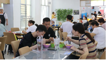 豐富的美食、熱情的態(tài)度,校園的食堂里冒著熱氣,在微涼的今天,溫暖著家長和學生們的身體,在每一個餐桌旁,不時地傳來聲聲笑語。飯里有家的味道,桌上有父母關懷囑咐的話語。