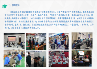 會議中,各教學(xué)創(chuàng)新團(tuán)隊(duì)主持人結(jié)合人才培養(yǎng)模式創(chuàng)新,課程體系、教學(xué)資源、教材建設(shè),教法改革,校企合作產(chǎn)教融合建設(shè),團(tuán)隊(duì)整體素質(zhì)提升等方面,對項(xiàng)目立項(xiàng)以來的建設(shè)任務(wù)進(jìn)展、取得成果、存在的問題以及下一年度建設(shè)計(jì)劃做了匯報(bào)。各大師(名師)工作室主持人圍繞計(jì)劃實(shí)施、主要業(yè)績等情況,從傳藝、攻關(guān)、研發(fā)、交流等方面,對工作室近一年的工作開展情況進(jìn)行了匯報(bào)。評審人員就各團(tuán)隊(duì)的匯報(bào)情況進(jìn)行了評審意見反饋。