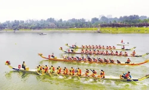 賽龍舟,是端午節(jié)的主要習(xí)俗。相傳起源于古時(shí),楚國(guó)人因舍不得賢臣屈原投江死去,許多人劃船追趕拯救。他們爭(zhēng)先恐后,追至洞庭湖不見蹤跡。之后每年五月五日劃龍舟以紀(jì)念之。人們借劃龍舟驅(qū)散江中之魚,以免吃掉屈原的身體。競(jìng)渡之習(xí),盛行于吳、越、楚。