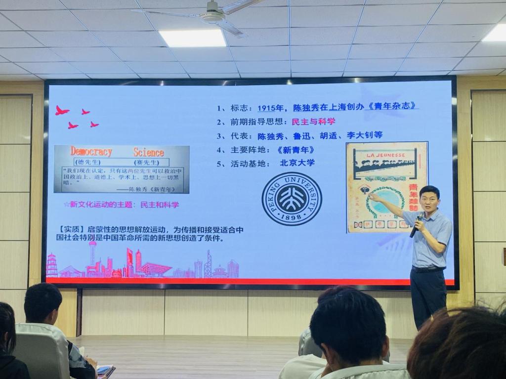 開班儀式結(jié)束后,馬克思主義學(xué)院院長范青以《黨的創(chuàng)建與紅船精神》為主題,為全體參訓(xùn)學(xué)員進行授課。他圍繞中國共產(chǎn)黨的創(chuàng)建歷史、紅船精神的精神內(nèi)涵以及五四運動的意義這三個問題,帶領(lǐng)全體參訓(xùn)學(xué)員回顧了黨的建設(shè)歷程、黨的偉大成就,教育引導(dǎo)全員牢記黨的歷史,自覺繼承和發(fā)揚紅船精神,為中華民族偉大復(fù)興而努力奮斗。