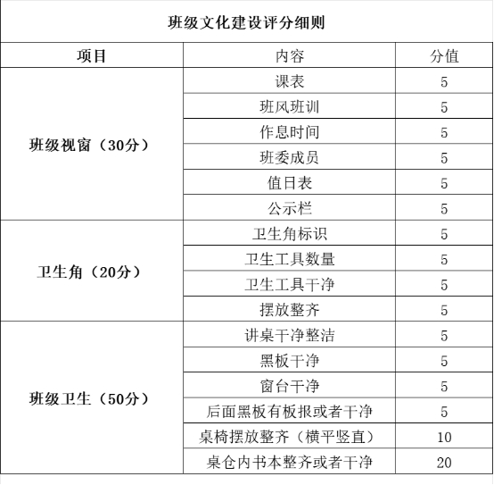 此次活動(dòng),中高職6個(gè)專業(yè)共計(jì)20個(gè)班參與評(píng)選。主要從班級(jí)視窗布置、衛(wèi)生角的設(shè)置擺放及班級(jí)整體衛(wèi)生三個(gè)方面開展,旨在以評(píng)促改,提高同學(xué)的環(huán)境衛(wèi)生意識(shí),締造美麗教室,展示班級(jí)風(fēng)采,彰顯班級(jí)特色,營造文化氛圍,使教室真正成為學(xué)生的學(xué)習(xí)樂園和幸福家園?;顒?dòng)前,機(jī)械工程系通過制定詳細(xì)的評(píng)比方案及評(píng)分表,利用晨、午檢細(xì)致安排活動(dòng)內(nèi)容及要求,教育引導(dǎo)各班級(jí)學(xué)生積極參與到此次評(píng)選活動(dòng)中來,養(yǎng)成良好的衛(wèi)生習(xí)慣,提高衛(wèi)生意識(shí),創(chuàng)造干凈、整潔、舒適的學(xué)習(xí)環(huán)境;活動(dòng)中,各班級(jí)積極投入,展示了他們對(duì)班級(jí)衛(wèi)生及文化建設(shè)的重視和努力。機(jī)械工程系副主任宋福亮帶領(lǐng)未承擔(dān)班主任工作的老師組成評(píng)委團(tuán),按照評(píng)分細(xì)則對(duì)各班級(jí)文化建設(shè)情況逐一檢查并完成評(píng)比打分。