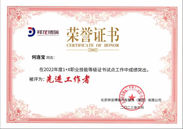 近日,由北京中車行高新技術(shù)有限公司職業(yè)教育培訓(xùn)評(píng)價(jià)組織主辦的“2022年‘1+X’證書制度汽車運(yùn)用與維修、智能新能源汽車職業(yè)技能等級(jí)證書考評(píng)工作、北京祥龍博瑞汽車服務(wù)有限公司2022年度‘1+X’證書試點(diǎn)工作總結(jié)表彰會(huì)在北京順利開幕。寧夏工業(yè)學(xué)校榮獲了2022年“1+X”證書制度汽車運(yùn)用與維修、智能新能源汽車職業(yè)技能等級(jí)證書考評(píng)工作優(yōu)秀院校,電氣工程系教師何連寶榮獲優(yōu)秀專家、先進(jìn)工作者等榮譽(yù)稱號(hào)。