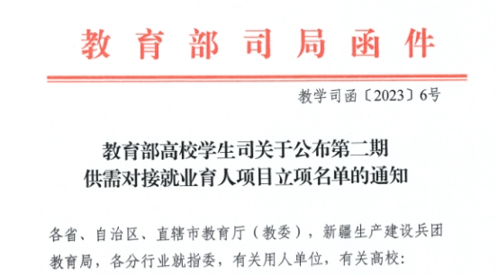 近日,教育部公布的《教育部高校學生司關于公布第二期供需對接就業(yè)育人項目立項名單的通知》中,石嘴山工貿職業(yè)技術學院榜上有名。