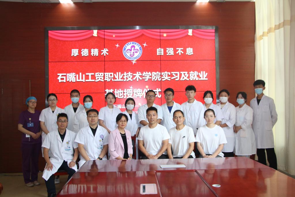 為進(jìn)一步貫徹黨的二十大精神,落實自治區(qū)黨委和政府關(guān)于開展“就業(yè)創(chuàng)業(yè)促進(jìn)年”活動的安排部署,促進(jìn)學(xué)院畢業(yè)生高質(zhì)量就業(yè),7月12日,石嘴山工貿(mào)職業(yè)技術(shù)學(xué)院商貿(mào)管理系社區(qū)康復(fù)專業(yè)與石嘴山市第一人民醫(yī)院實習(xí)基地合作簽約授牌儀式在石嘴山市第一人民醫(yī)院隆重舉行。石嘴山市第一人民醫(yī)院張靜虹副院長、寇博科長、趙衛(wèi)華主任,石嘴山工貿(mào)職業(yè)技術(shù)學(xué)院商貿(mào)管理系副主任王曉寧帶領(lǐng)社區(qū)康復(fù)專業(yè)部分老師及11名在石嘴山市第一人民醫(yī)院實習(xí)學(xué)生參加了此次簽約授牌儀式。