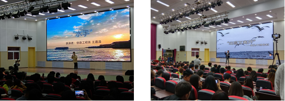 決賽之夜,實訓樓報告廳內(nèi)氣氛熱烈非凡。選手們用動人的歌聲和真摯的情感,深情演繹了一首首經(jīng)典歌曲,不僅展現(xiàn)了他們對音樂的無限熱愛與執(zhí)著追求,更表達了對未來美好生活的熱切向往。比賽過程中,除了考驗了選手們的演唱技巧和舞臺表現(xiàn)力外,還特別增設了知識問答環(huán)節(jié),內(nèi)容涵蓋黨史,國情等多個方面,既增添了比賽的趣味性,又深化了活動的教育意義。