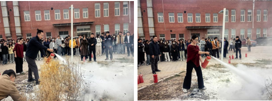 疏散演練結(jié)束后,進(jìn)入實(shí)戰(zhàn)操作環(huán)節(jié)。商貿(mào)管理系主任蓋猛現(xiàn)場演示了滅火器“提、拔、握、壓”四字操作法的正確步驟。在教師現(xiàn)場監(jiān)督指導(dǎo)下,學(xué)生們依次上前實(shí)操演練,掌握滅火器使用技巧及滅火毯覆蓋滅火方法。指導(dǎo)教師全程觀察,對操作中的問題及時(shí)糾正,如提醒學(xué)生注意站在上風(fēng)方向、保持適當(dāng)噴射距離等,確保滅火操作的安全性和有效性。通過親身體驗(yàn),師生們對滅火器使用技巧有了更直觀的認(rèn)識(shí),撲救初期火災(zāi)的自信心和實(shí)際能力得到顯著提升。
