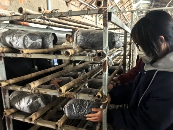 實(shí)踐教學(xué)環(huán)節(jié)在大武口區(qū)菌緣產(chǎn)業(yè)園(寧夏食用菌資源與種質(zhì)創(chuàng)新工程技術(shù)研究中心)開展。學(xué)生在教師指導(dǎo)下,親手操作了香菇菌棒的制棒、滅菌、接種、培養(yǎng)及出菇管理等完整生產(chǎn)流程。通過深入企業(yè)觀摩和現(xiàn)場實(shí)操考核,同學(xué)們將課堂所學(xué)與生產(chǎn)實(shí)際緊密對接,切實(shí)提升了動手能力和解決問題的能力。
