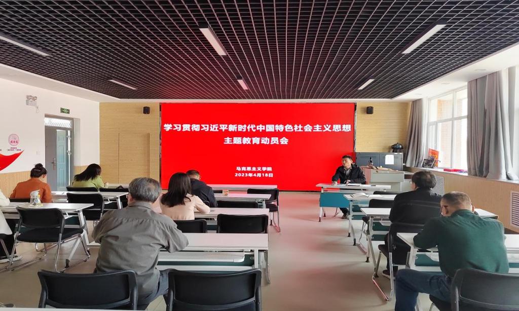 為深入學習貫徹習近平總書記在中央主題教育工作會議上的重要講話精神,貫徹落實我校學習習近平新時代中國特色社會主義思想主題教育動員大會精神。馬克思主義學院于2023年4月18日下午兩點在11號樓思政VR教學體驗中心召開了學習貫徹習近平新時代中國特色社會主義思想主題教育動員大會。