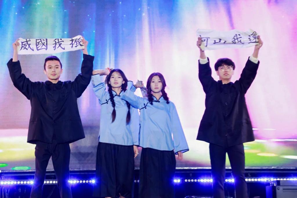 第一篇章·青青子衿,志懷家國。晚會以舞蹈《奔向青春》拉開序幕,商貿管理系的同學們用動感的舞姿展現(xiàn)了青春的活力晚會以舞蹈《奔向青春》拉開序幕,商貿管理系的同學們用動感的舞姿展現(xiàn)了青春的活力與激情。緊接著,中華經典誦讀社帶來的情景朗誦《紅杜鵑》,以深情的語調訴說著對祖國的熱愛與敬仰。由學院合唱團帶來的合唱《山河》帶領全體師生共同回溯往昔崢嶸歲月,感受先輩們以信仰為帆、以擔當為槳的逐夢征程,不僅展現(xiàn)了學子們的多才多藝,更傳遞出了他們對家國情懷的深刻理解與傳承。由大學城派出所帶來的歌曲《我們的歌(反詐版)》,以輕快的歌曲串燒引導全體師生提升反詐意識,保護自身安全。