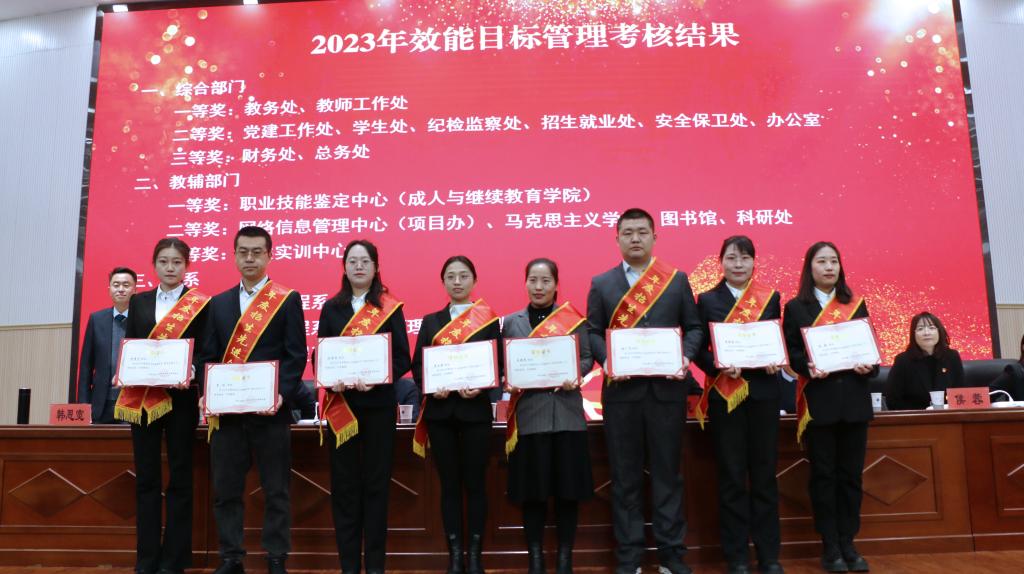 大會上,通報(bào)了2023年效能目標(biāo)管理考核結(jié)果,表彰了2023年年度考核優(yōu)秀等次人員、2023年度招生就業(yè)工作先進(jìn)個人、就業(yè)工作先進(jìn)集體。機(jī)械工程系副主任蘭晏文、電氣工程系副主任劉博雅、商貿(mào)管理系教師宋仁娟、商貿(mào)管理系教師王曉紅分別圍繞工作實(shí)際,總結(jié)2023年日常工作、招生就業(yè)工作經(jīng)驗(yàn),做了交流發(fā)言。