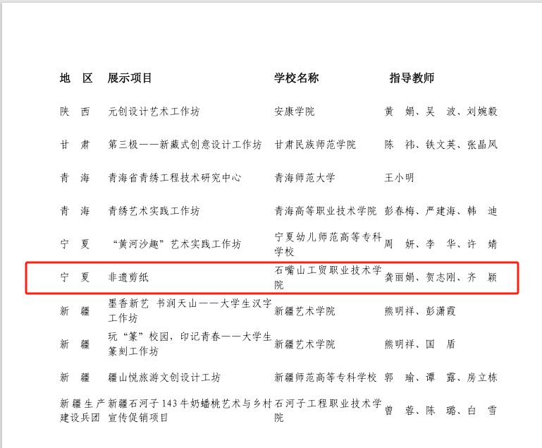 “剪藝傳承紅色精神,賡續(xù)民族復(fù)興夢想”2023年11月份商貿(mào)管理系“紅星剪藝工坊”在全區(qū)第七屆大學生藝術(shù)展演活動——學生藝術(shù)實踐工作坊展項榮獲一等獎后,被推選代表寧夏參加今年6月份全國大學生藝術(shù)展演活動并榮獲學生藝術(shù)實踐工作坊展演三等獎,這是學院首次參加此類藝術(shù)展演活動并贏得了殊榮。