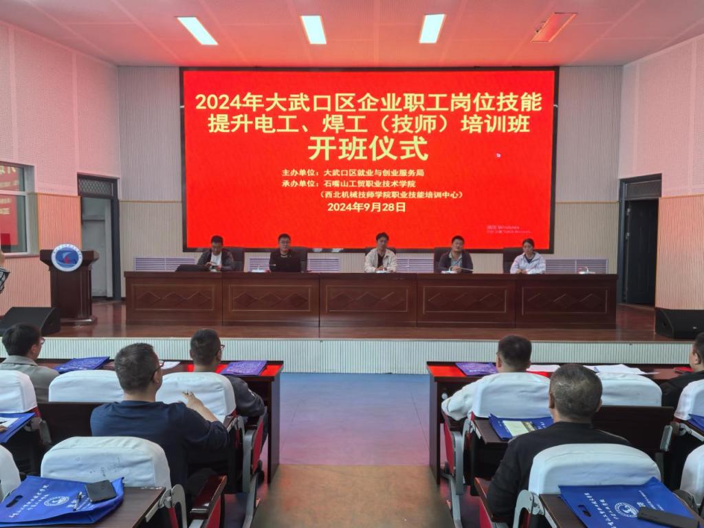 2024年9月28日上午,大武口區(qū)企業(yè)職工崗位技能提升電工(技師、高級技師)、焊工(技師)培訓班在石嘴山工貿職業(yè)技術學院正式開班,參加本次培訓的有焊工技師39名,電工技師11名、高級技師17人,共同開啟為期二十天的培訓。本次培訓由大武口區(qū)就業(yè)與創(chuàng)業(yè)服務局主辦,石嘴山工貿職業(yè)技術學院(西北機械技師學院職業(yè)技能培訓中心)承辦。大武口區(qū)就業(yè)創(chuàng)業(yè)局培訓工作負責人丁朝陽,中色(寧夏)東方集團有限公司、寧夏天地西北煤機有限公司、寧夏西北駿馬電機制造股份有限公司、寧夏凝力機械設備有限公司、寧夏英力特化工股份有限公司等企業(yè)67名參培職工,學院培訓鑒定中心相關工作人員參加開班儀式。