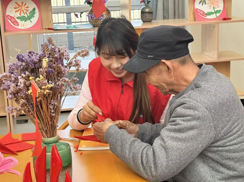 此外,志愿者們還為老人們提供輕柔按摩,緩解身體疲憊。非遺剪紙展示環(huán)節(jié)更是點(diǎn)燃了老人們的興趣,志愿者們現(xiàn)場(chǎng)演示剪紙技藝,手把手指導(dǎo)老人們體驗(yàn)剪紙樂趣,一張張紅紙?jiān)谥讣夥w,化作寓意吉祥的圖案,老人們臉上洋溢著幸福的笑容。