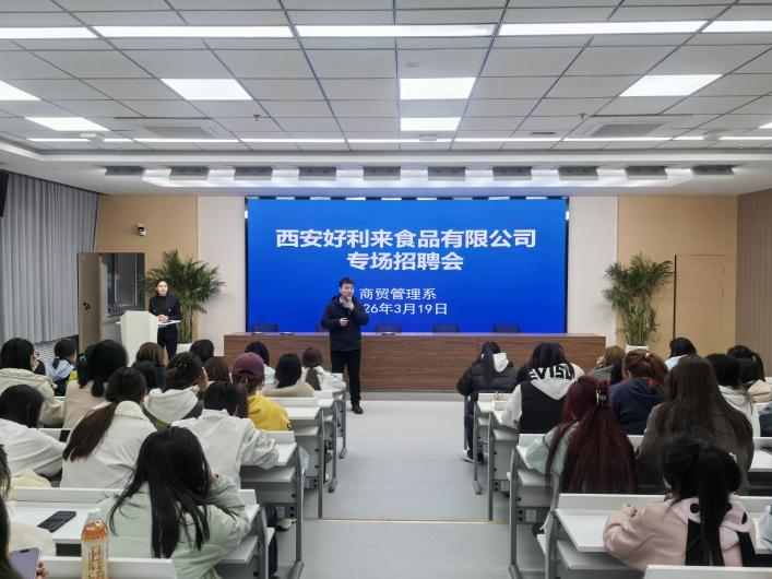 本次專場招聘會設于學院產教融合大樓,西安好利來食品有限公司人力資源部相關負責人親臨現場,為畢業(yè)生開展企業(yè)宣講與崗位推介工作。宣講過程中,企業(yè)代表通過企業(yè)宣傳片展播、PPT 詳細講解、現場互動問答等多樣形式,全方位、多角度介紹了公司發(fā)展歷程、企業(yè)文化內核、品牌競爭優(yōu)勢,同時對本次招聘的崗位需求、職業(yè)發(fā)展通道、薪酬福利體系等畢業(yè)生關注的核心問題進行逐一解讀。此外,企業(yè)代表結合自身在好利來的職業(yè)成長經歷,分享了真實的職場發(fā)展故事,生動的講述激發(fā)了在場學生對未來職業(yè)發(fā)展的憧憬與期待,招聘會現場氣氛熱烈,學生參與積極性高,互動交流環(huán)節(jié)踴躍有序。