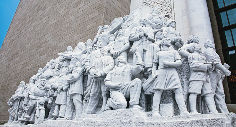 中國(guó)共產(chǎn)黨歷史展覽館廣場(chǎng)上矗立的《信仰》、《偉業(yè)》、《攻堅(jiān)》、《追夢(mèng)》四組大型雕塑,講述著中國(guó)共產(chǎn)黨100多年來(lái)為中國(guó)人民謀幸福、為中華民族謀復(fù)興的奮斗歷程。圖為雕塑《偉業(yè)》,共塑造65位人物形象,涵蓋不同群體、不同職業(yè),重點(diǎn)反映中國(guó)共產(chǎn)黨團(tuán)結(jié)帶領(lǐng)全國(guó)各族人民,堅(jiān)定“四個(gè)自信”,奮發(fā)圖強(qiáng)、艱苦奮斗,推動(dòng)中國(guó)特色社會(huì)主義事業(yè)不斷取得歷史性成就。